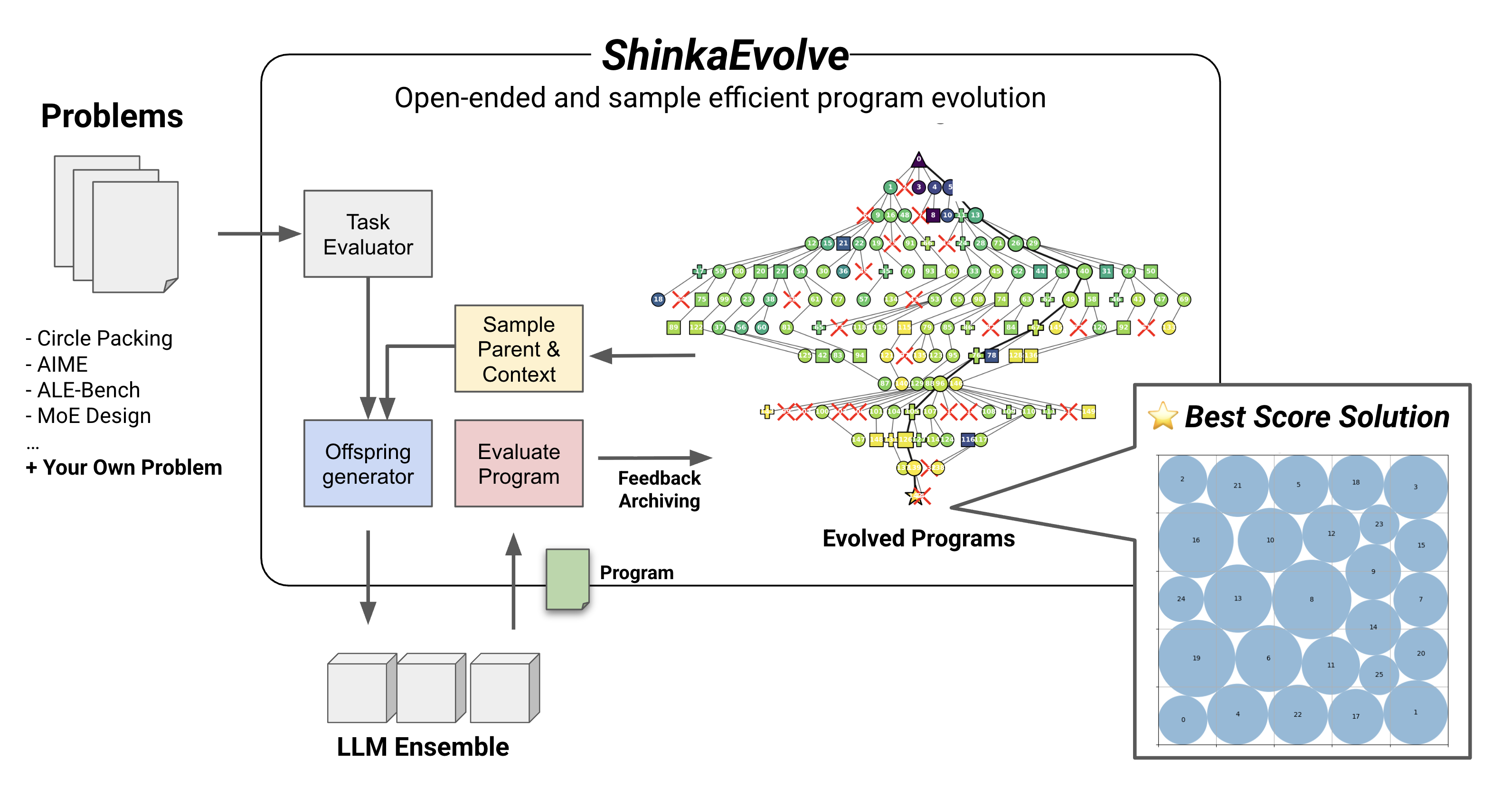 In our new work, “ShinkaEvolve: Towards Open-Ended And Sample-Efficient Program Evolution,” we introduce a new framework that leverages LLMs to evolve programs and discover new solutions with state-of-the-art performance and incredible efficiency.
